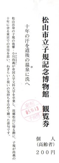 前回来た時の宿「ふなや」の隣にあったのに行けてなかった「市立子規記念博物館」に行く