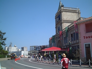 5分ほど歩くと公園の向こうに「イタリア村」が見えてくる