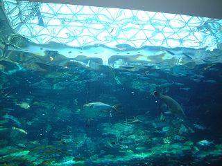 海岸のほうに歩いて7~8分で「水族館」に着く