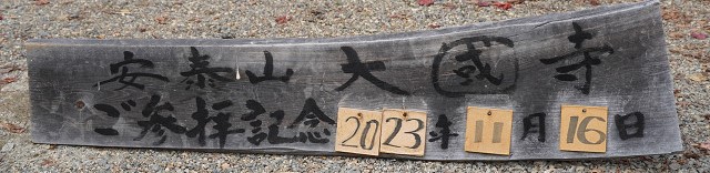 『正和の頃(鎌倉時代末期)、花園天皇のご帰依により本堂を再建、また「安泰山大國寺」の称号を賜りました。唐様と和様の折衷で、当時の最新技法であったようです。以来広く地元住民に親しまれ崇敬されて今日に至っております。昭和42年、兵庫県観光百選に指定され、また、新丹波七福神大黒天霊場としても、たくさんの参拝者を迎えております。