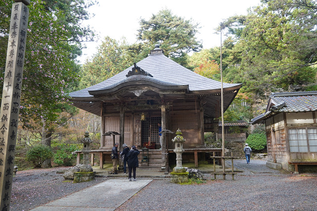本堂 : 室町時代初期に建てられた、唐様と和様の折衷様式。昭和36年国指定重要文化財に指定。