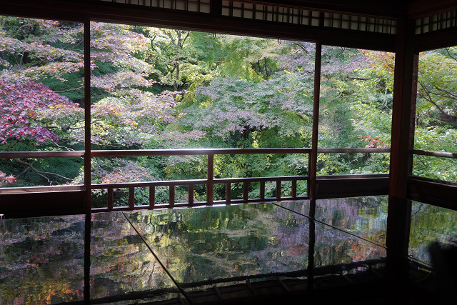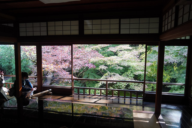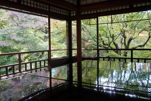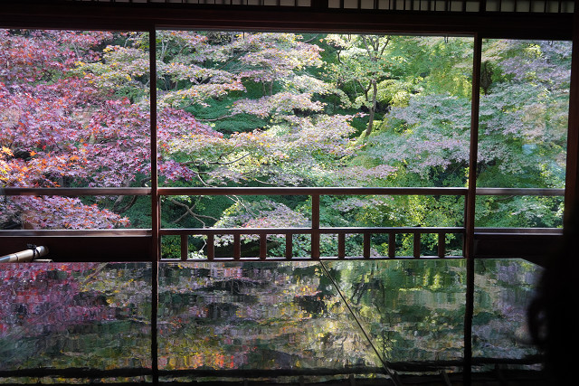 床紅葉だと思っていたら床ではなく大きな卓板に映るんだ(実相院は本当の床だった)