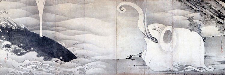 若冲の「像と鯨図屏風」(MIHO MUSEUM蔵)だ