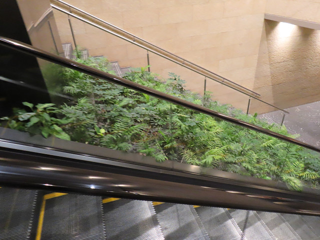 地下鉄に行く上下のエスカレーターの間に「羊歯」が植えられている ビックリ