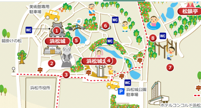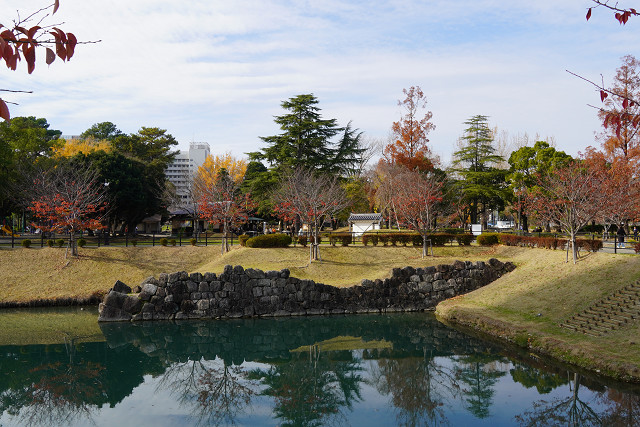 駿府城公園と城址は静岡駅から1.2km 徒歩約15分 県庁の前に広がる