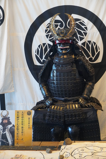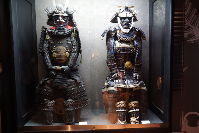 食堂や土産物売り場・戦場で使われた兜や武器のレプリカ