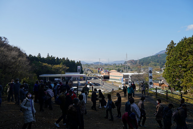 バスで石田光成の本陣 笹尾山まで移動する ガイドが待っていた