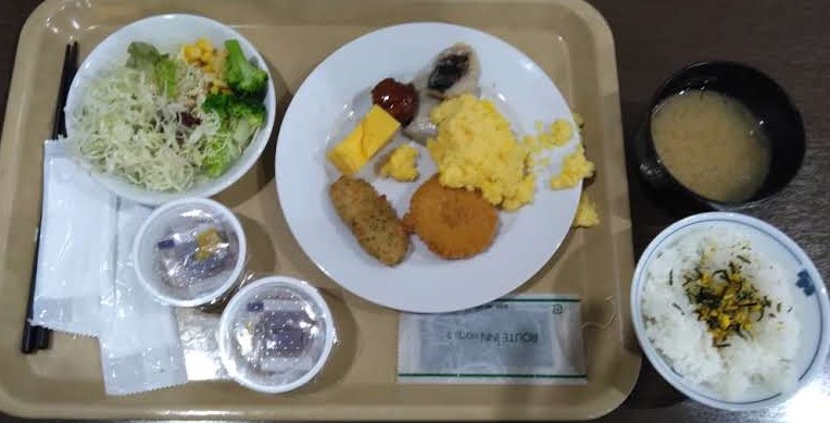 ビジネスホテルの食堂も労働者と団体客で満席
