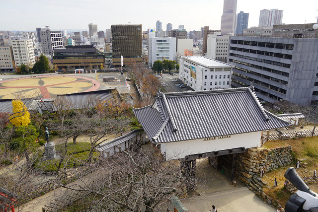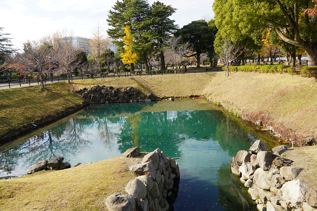 県庁と堀とお城 その隣が県立歴史博物館(下の写真)