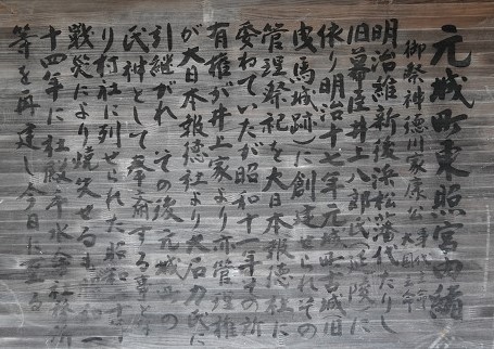 道を挟んで東側に小高い丘がある 引間城趾(東照宮)である