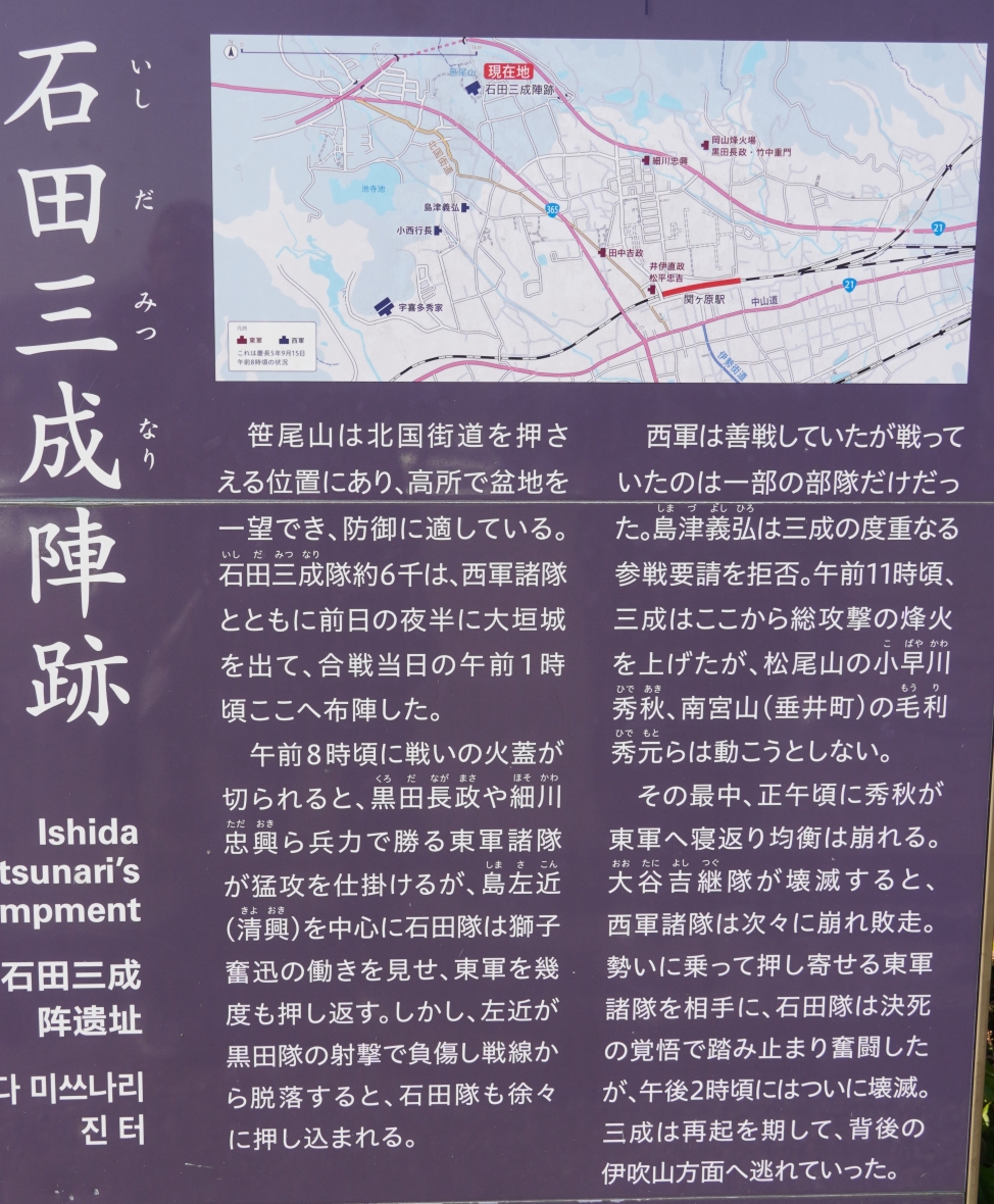 石田光成の陣は右奥の山の裾である