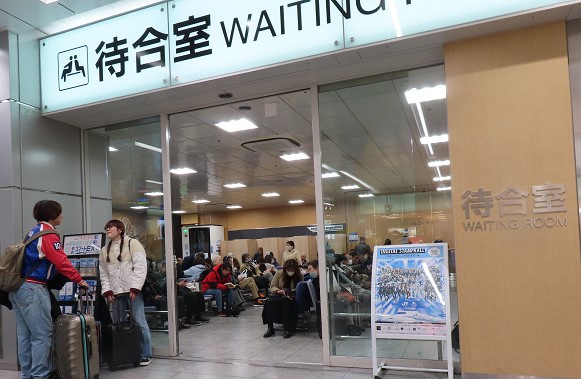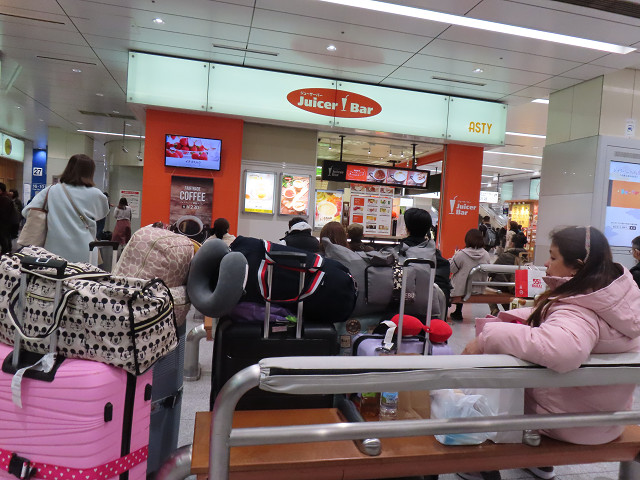日曜日の好天とが相まって新大阪駅の待合所付近は日本人・外国人と大混雑