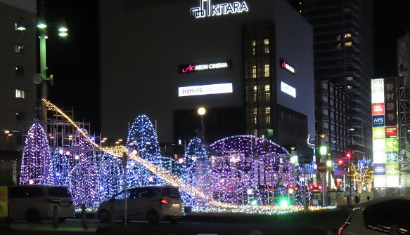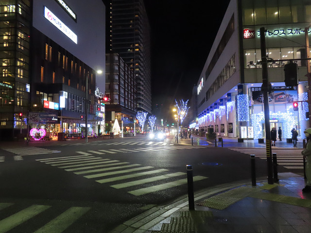 2人は一杯気分でクリスマス化粧の町中をぶらぶら しかし思う以上に建物が多く方向感覚が狂った
