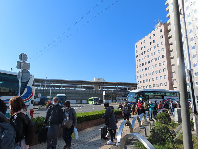 一旦バスでホテルに入り荷物を置いて 駅近まで行きたい人はバスで駅前まで送り