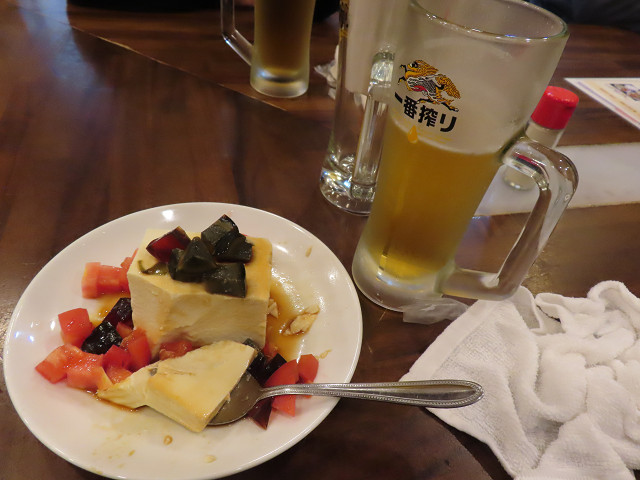 ビールと海老と豆腐で腹が一杯