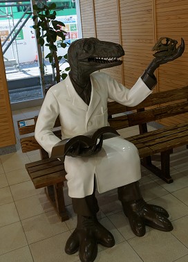 福井県は恐竜博物館が有名だが福井駅の恐竜ロボットや駅のベンチにさりげなく恐竜