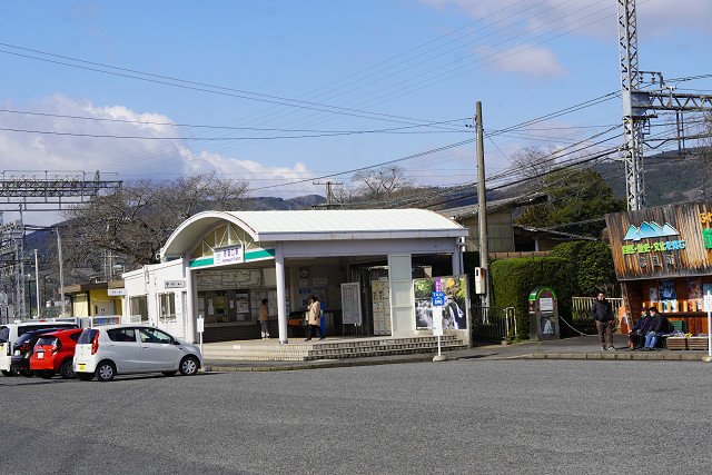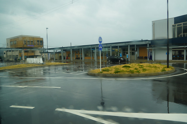 この駅は高台に有り 駅も細長く 待合所は階段を深く降りてトンネルを通つて改札を出た所にある