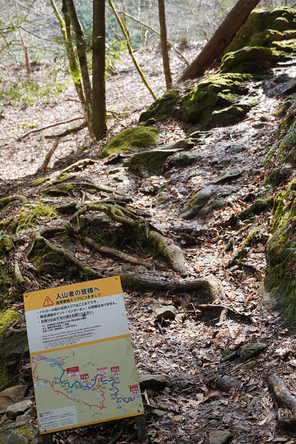 案内書には岩窟滝まで90分の表示(その先は入山禁止)