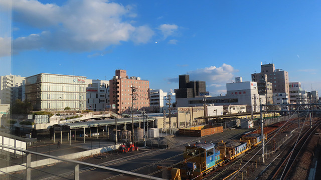 おお!新幹線の駅が在来線の駅の上にそびえている