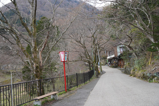 バス停滝口付近には土産物店や「赤目温泉」旅館やサンショウウオが飼育されている自然博物館