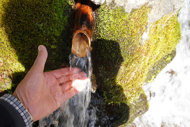 ある日、いつもよりずっと山奥に登りました。谷深くの岩壁から流れ落ちる水をながめ「あぁ、あの水が酒であったらなあ」