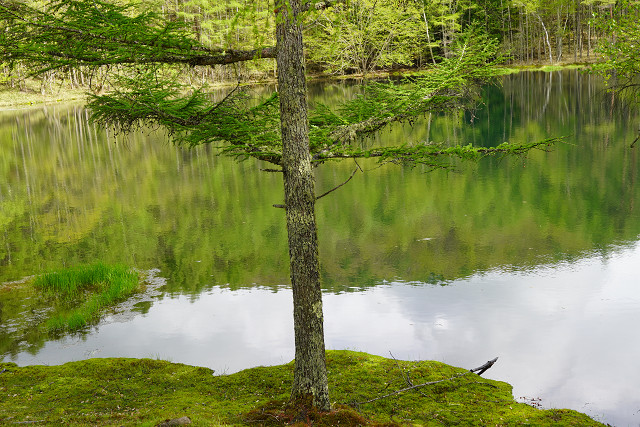 バスは再びメルヘン街道を引き返し最後の観光地御射鹿池へ