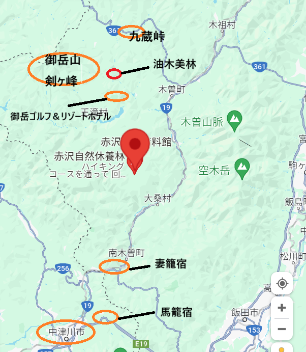 国道19号線を木曽川沿いに走り馬籠宿・妻籠宿の入り口を素通りし