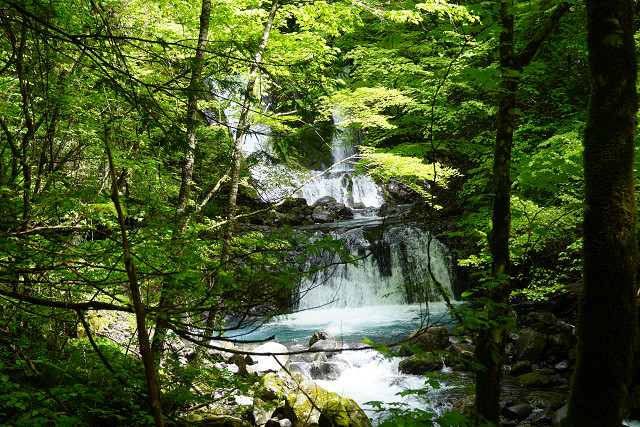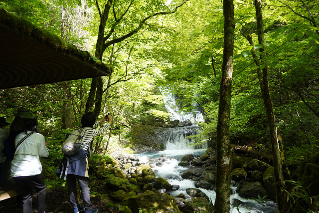 横谷渓谷を明治温泉に立ち寄り湯をして御射鹿池(みしゃがいけ)までまで行き