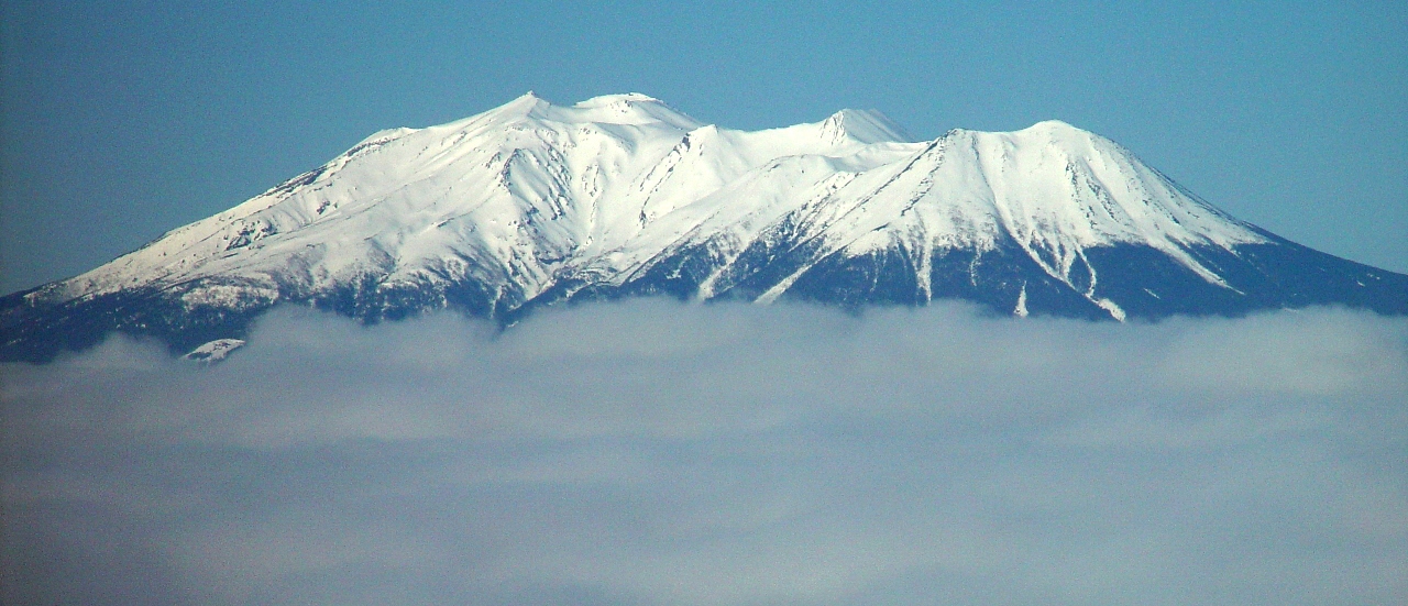 赤丸が主峰剣ヶ峰3067m NETの写真では左のとんがっている頂き