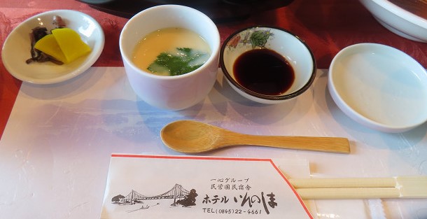 なんとか島の中腹にある「ホテルいんのしま」に着く 景色の良いレストランで昼食だ