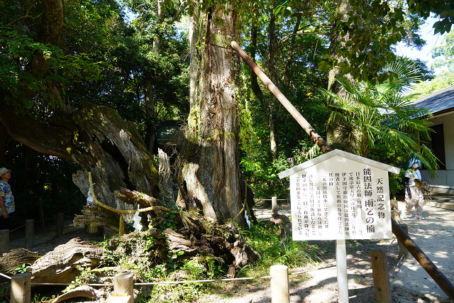 大山積大神の子孫「小千命」によって植えられたと伝えるもので、その時代は神武天皇御東征前と云われています。樹齢は2600年あまり。』
