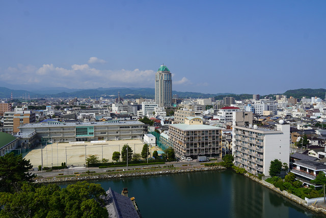 天守閣は本来もっと真ん中(緑の木の生えている所)にあったが明治に廃城となり本丸跡に