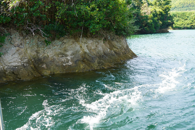チケットの写真でみると 船の先に桟橋が有り少し離れた島が鯛崎島