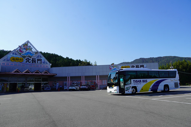 波止場にバスが待機 総勢44名 満席である 徹夜覚悟のコースだからか後期高齢者は