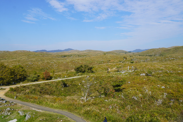 その上のカルスト台地を展望台から見る