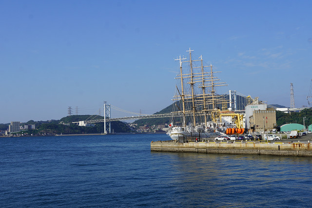 帆船の後ろが関門大橋