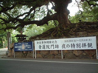 大きな楠の木と青蓮院の大きな盾看板
