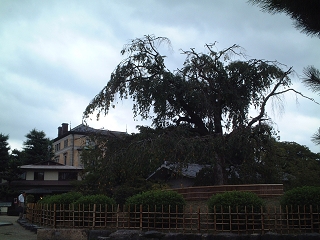 円山公園の枝垂桜 その横に見えるのが ホテル