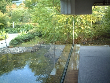 館の周りは川と池と四季の草花に包まれた平屋