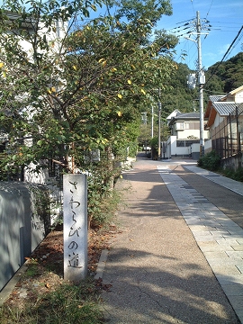 館を出て少し山手に行くと「早蕨の道」の道しるべ