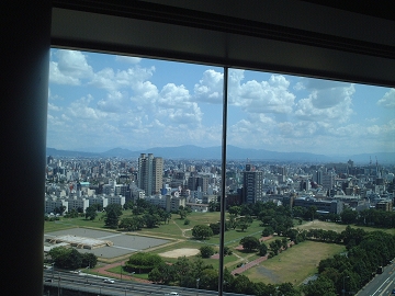 大阪城の横が難波宮跡遠くは生駒山 その向うには平城宮がある