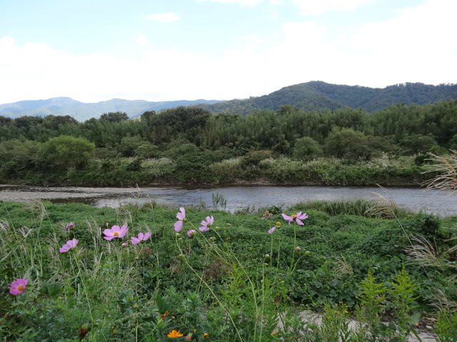 秋のひねもす 彼岸花とコスモスが沿道を飾る