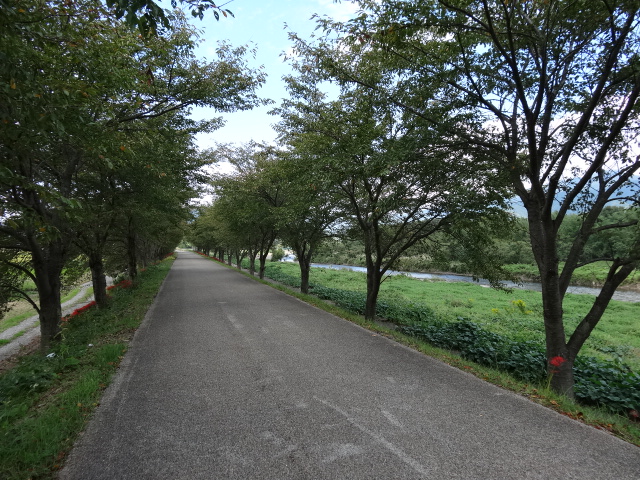 3Kmほどいくと 土手の左手に集落がみえてくる