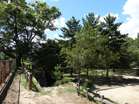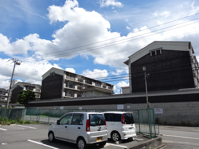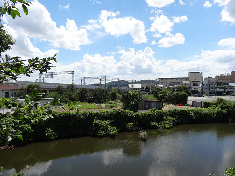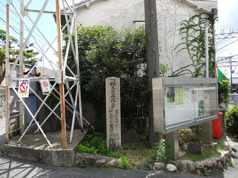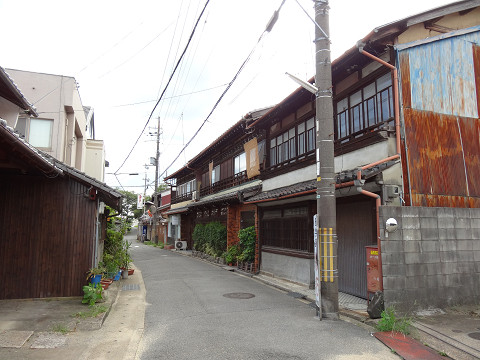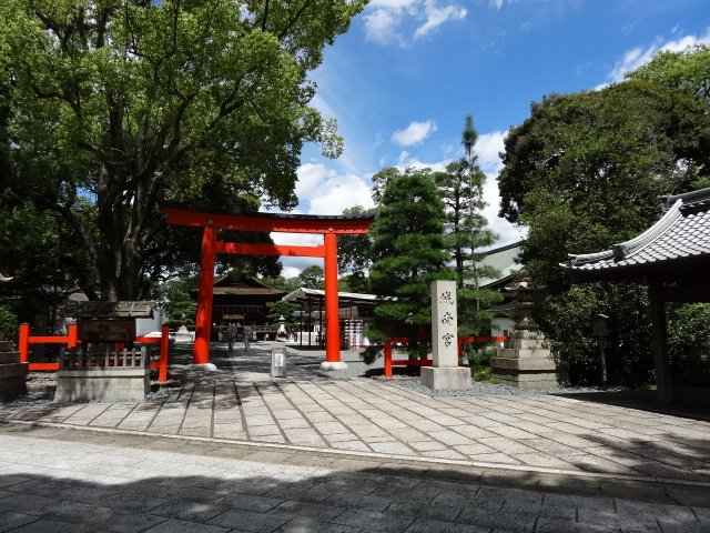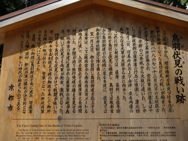 『日本第一安産守護之大神として広く崇められている、神功皇后を主祭神として仲哀天皇応神天皇他六柱の神を祭る。 初めは、『御諸神社』と称したが、平安時代貞観四年(八六二)九月九日に、この境内から「香」の良い水が涌き出たので、清和天皇よりその奇端によって、『御香宮』の名を賜った。豊臣秀吉は天正十八年(一五九〇)、願文と太刀(重要文化財)を献じてその成功を祈り、やがて伏見築城に際して、城内に鬼門除けの神として勧請し社領三百石を献じた。 その後、徳川家康は慶長十年(一六〇五)に元の地に本殿を造営し社領三百石を献じた。慶応四年(一八六八)正月、伏見鳥羽の戦には伏見奉行所に幕軍が據り、当社は官軍(薩摩藩)の屯所となったが幸いにして戦火は免れた。十月の神幸祭は、伏見九郷の総鎮守の祭礼とされ、古来『伏見祭』と称せられ今も洛南随一の大祭として聞こえている。』 とある その幕府軍はここから北に200mほど 歩いて5分ほどのところ「伏見奉行所」にあった といっても今はその石碑のみ ところがその石碑がみつからない 30分ほどうろうろしていたら なんと目の前の草の中に隠れていた 今は団地になっているのだがこの団地のデザインが洒落ている