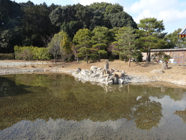 宮跡の一番東の端に特別名勝「東院庭園」がある