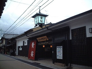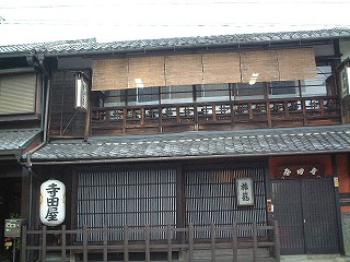 カッパ天国黄桜展示館の黒塀の通りをぬけて「竜馬商店街」を横切ったところに「寺田屋」がある。