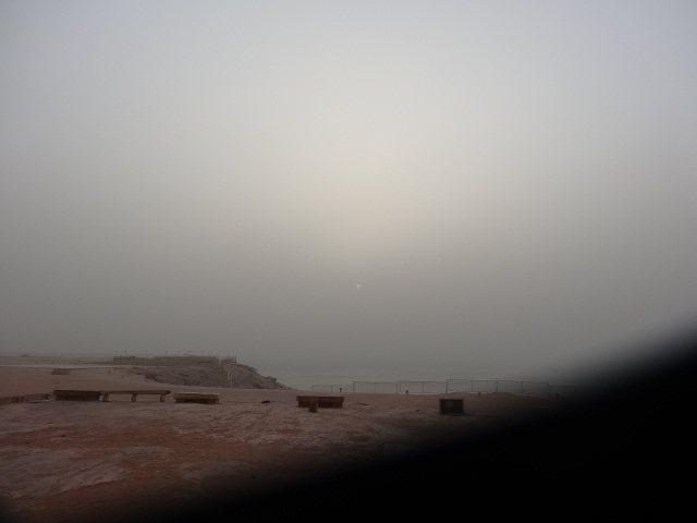 遠くまで見えていた砂漠が砂で霞んでいる