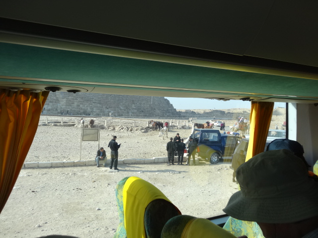 バス中でガイドからピラミッド観光の注意点を聞いた