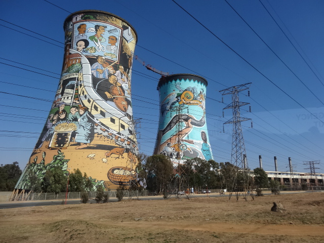 使わなくなった火力発電所(発電の80%は石炭)の煙突の落書きが有名になっている