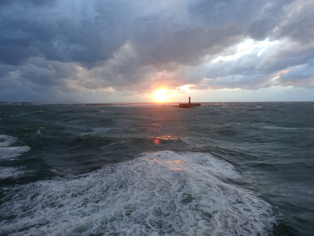 港から出たとたんに船は木の葉のようにローリング